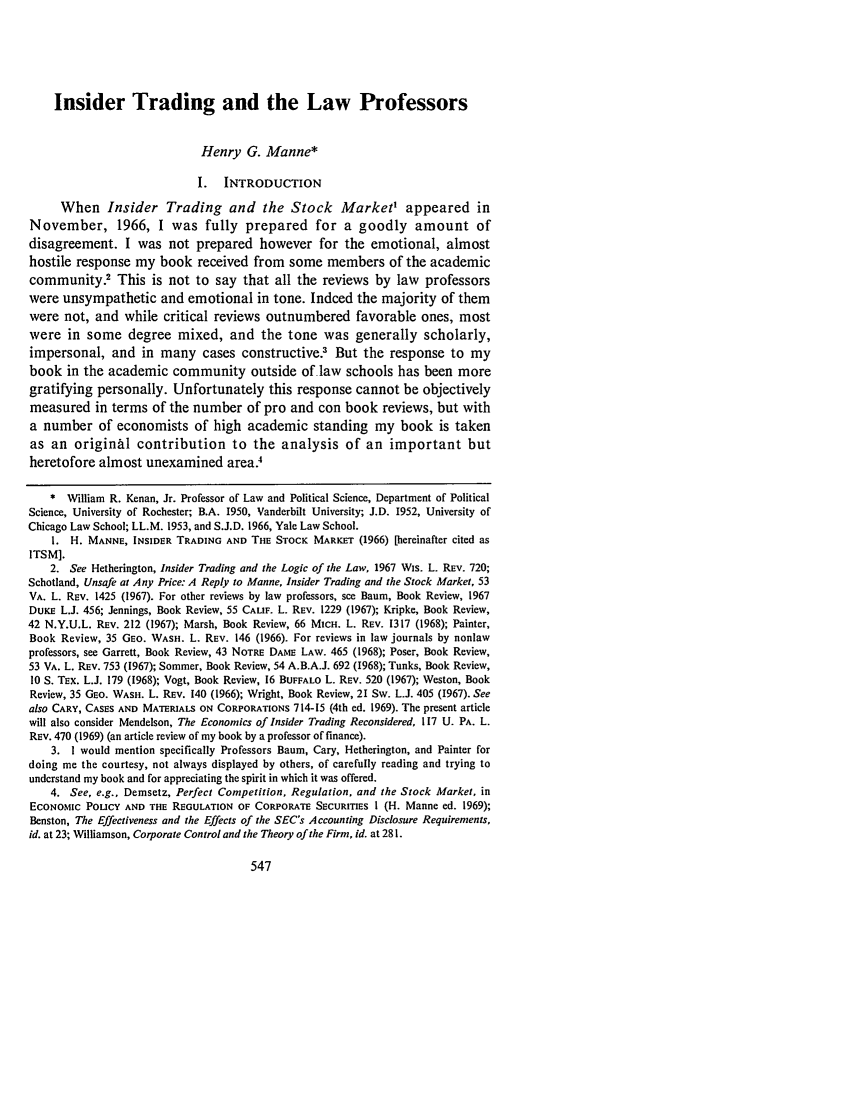 Insider Trading and the Law Professors 23 Vanderbilt Law