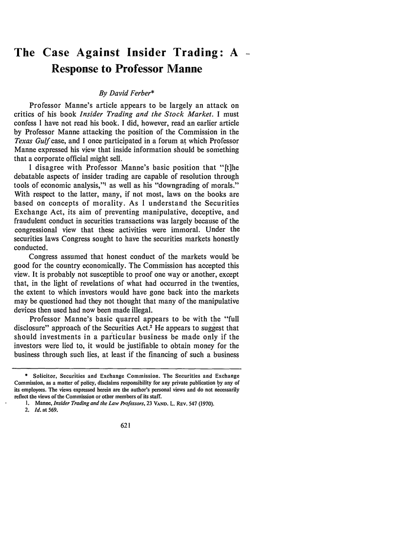 The Case Against Insider Trading A Response to Professor